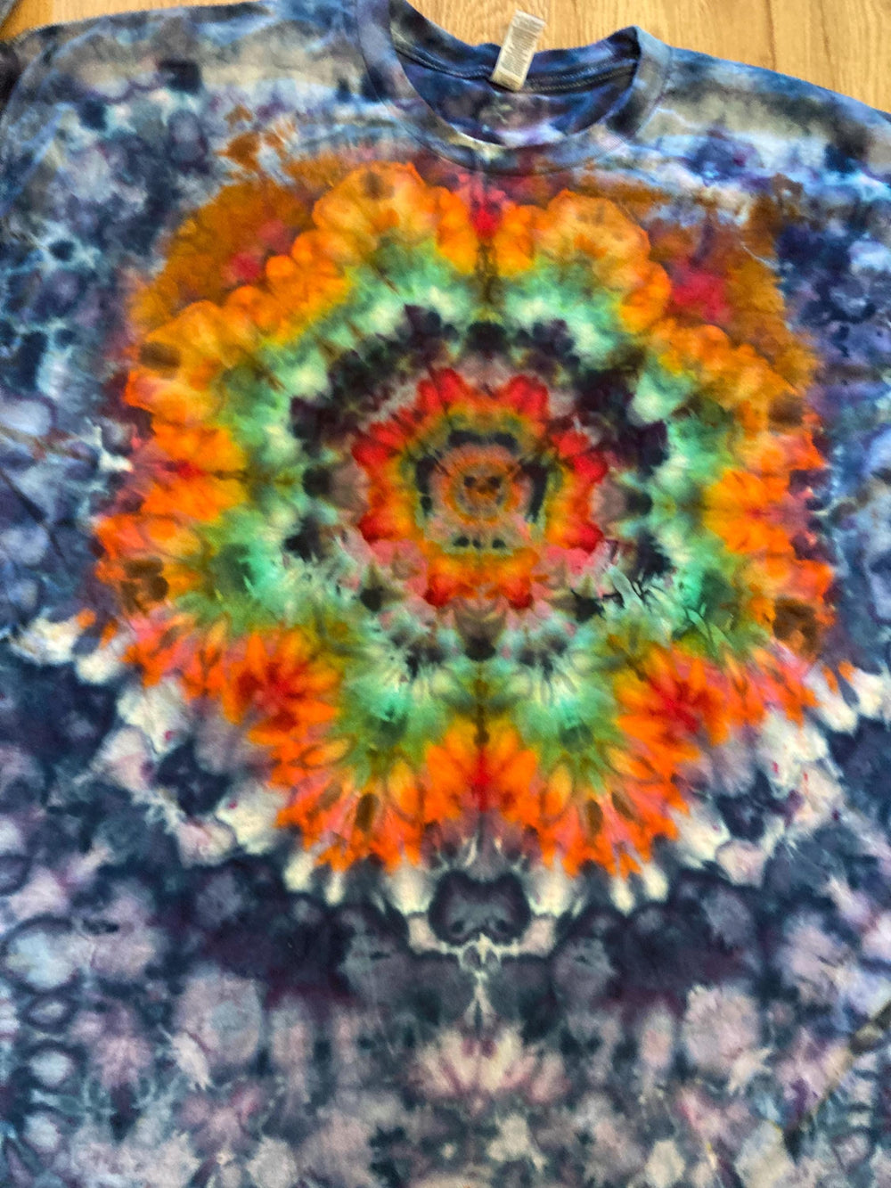 Handmade Mandala Shirt | Trippy Tie Dye Tee | Lotus Flower Shirt | 3XL Shirt | Oversized Tee | Psychedelic Shirt | Long Sleeve Yoga Tee Handmade Shirt, Mandala Shirt, Trippy Tie Dye Tee, Lotus Flower Shirt, 3XL Shirt, Oversized Tee, Psychedelic Shirt, Long Sleeve Yoga Tee, PHandmade mandala lotus flower ltie dye shirt containing vibrant colors with intricate patterns and immense depth