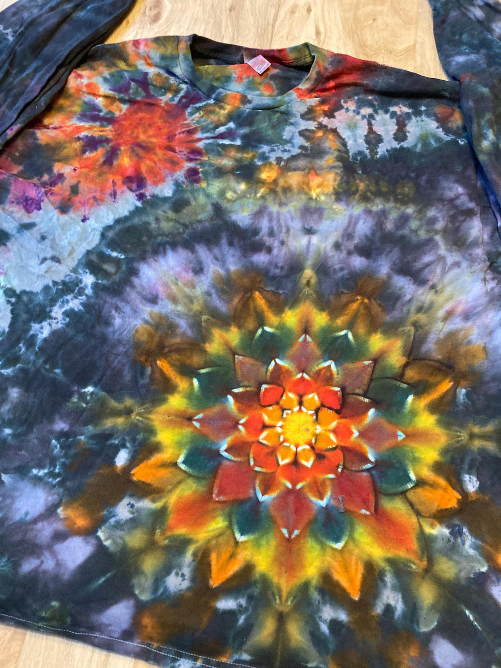Handmade Mandala Shirt | Trippy Tie Dye Tee | Lotus Flower Shirt | 3XL Shirt | Oversized Tee | Psychedelic Shirt | Long Sleeve Yoga Tee Handmade Shirt, Mandala Shirt, Trippy Tie Dye Tee, Lotus Flower Shirt, 3XL Shirt, Oversized Tee, Psychedelic Shirt, Long Sleeve Yoga Tee, PHandmade mandala lotus flower ltie dye shirt containing vibrant colors with intricate patterns and immense depth