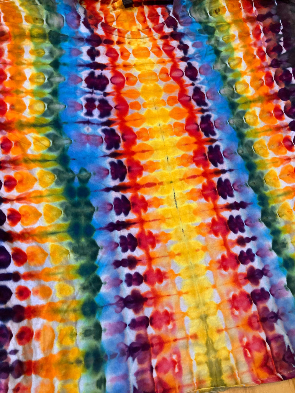 Handmade mandala lotus flower ltie dye shirt containing vibrant colors with intricate patterns and immense depth