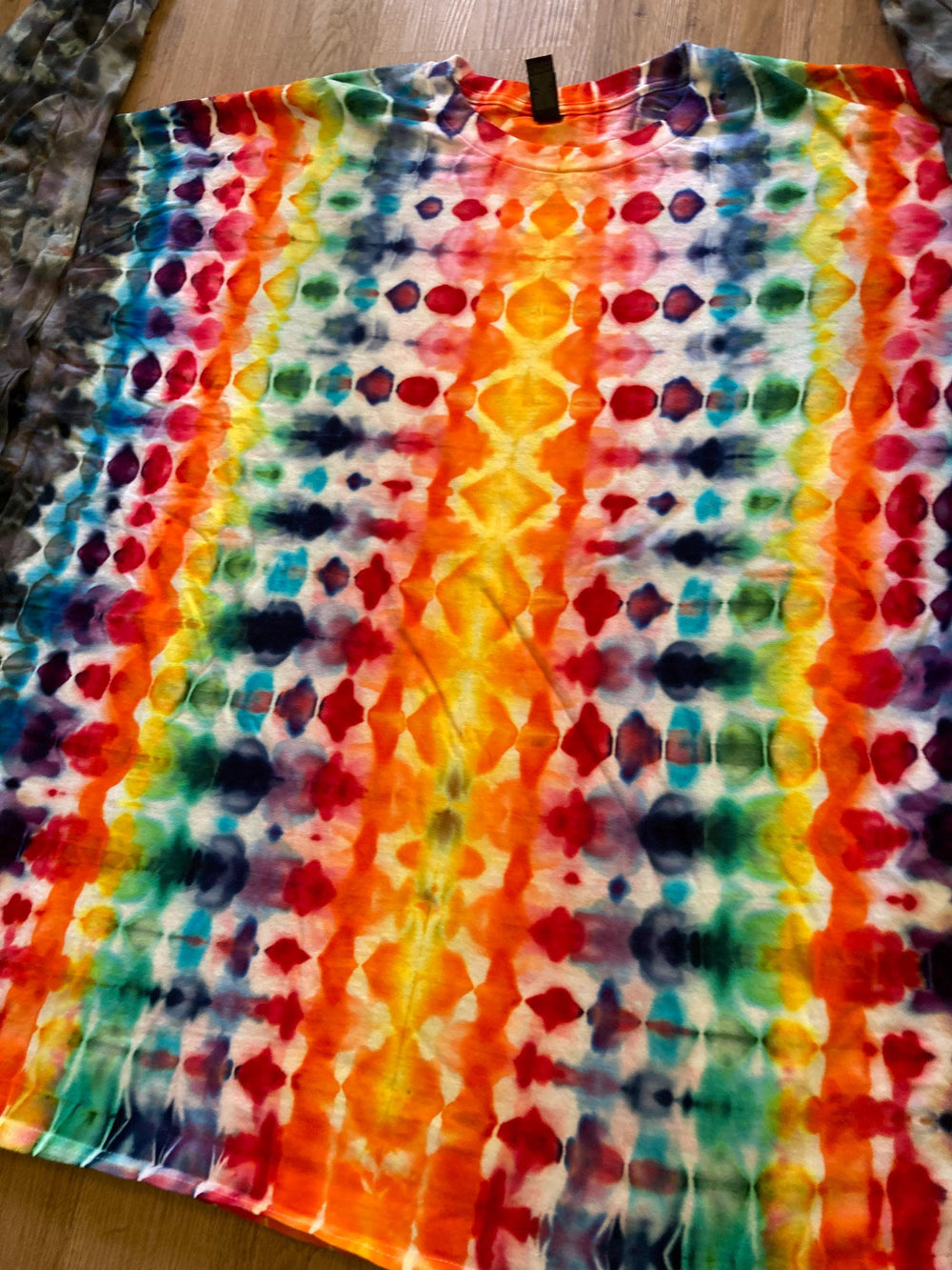 Handmade mandala lotus flower ltie dye shirt containing vibrant colors with intricate patterns and immense depth