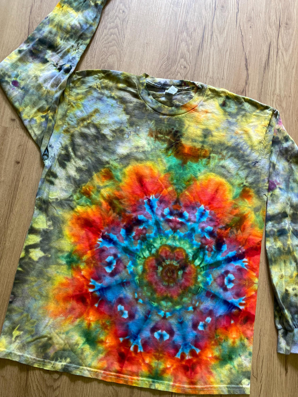 Handmade Mandala Shirt | Trippy Tie Dye Tee | Lotus Flower Shirt | Large Shirt | Oversized Tee | Psychedelic Shirt | Long Sleeve Yoga Tee