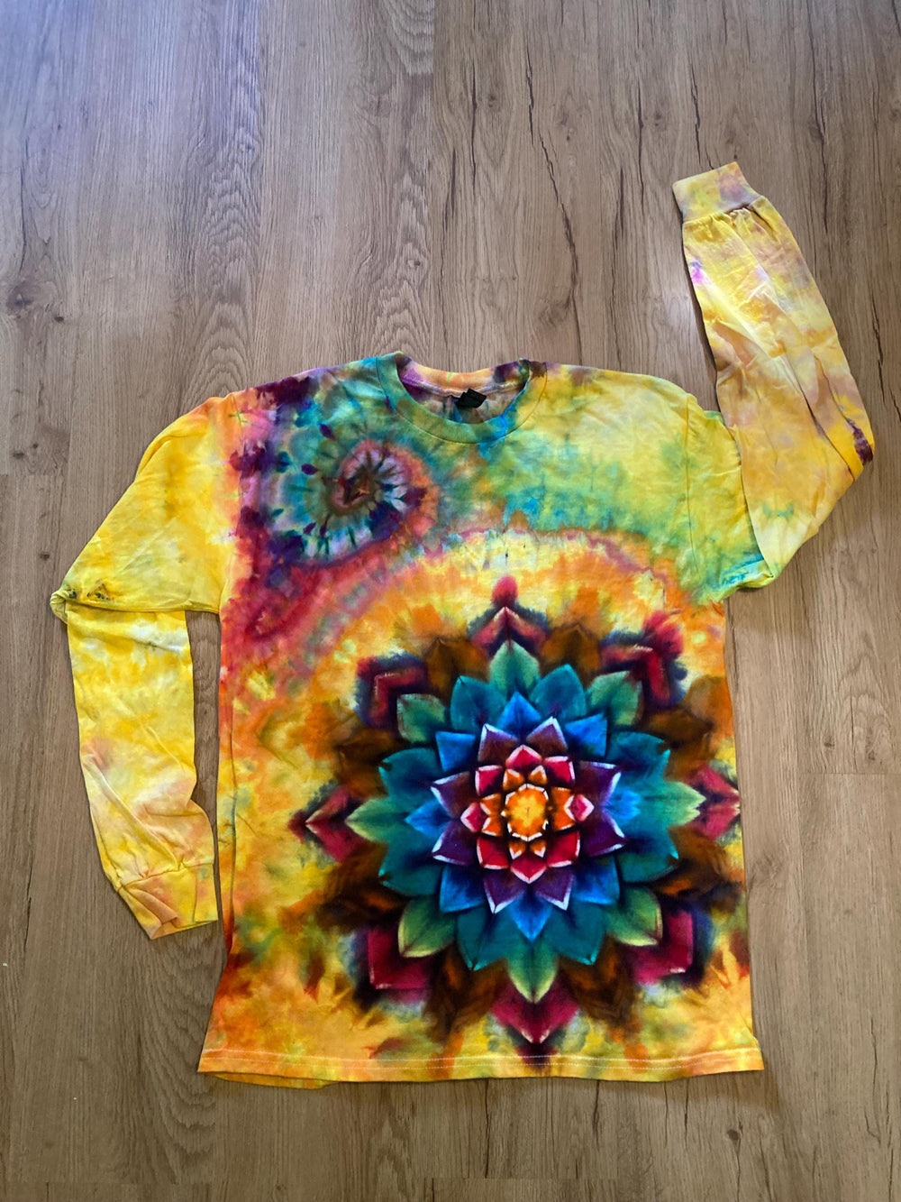 Medium Shirt | Handmade Special Mandala Shirt | Trippy Tie Dye | Lotus Flower Shirt | Oversized Tee | Psychedelic Shirt | Long Sleeve Tee