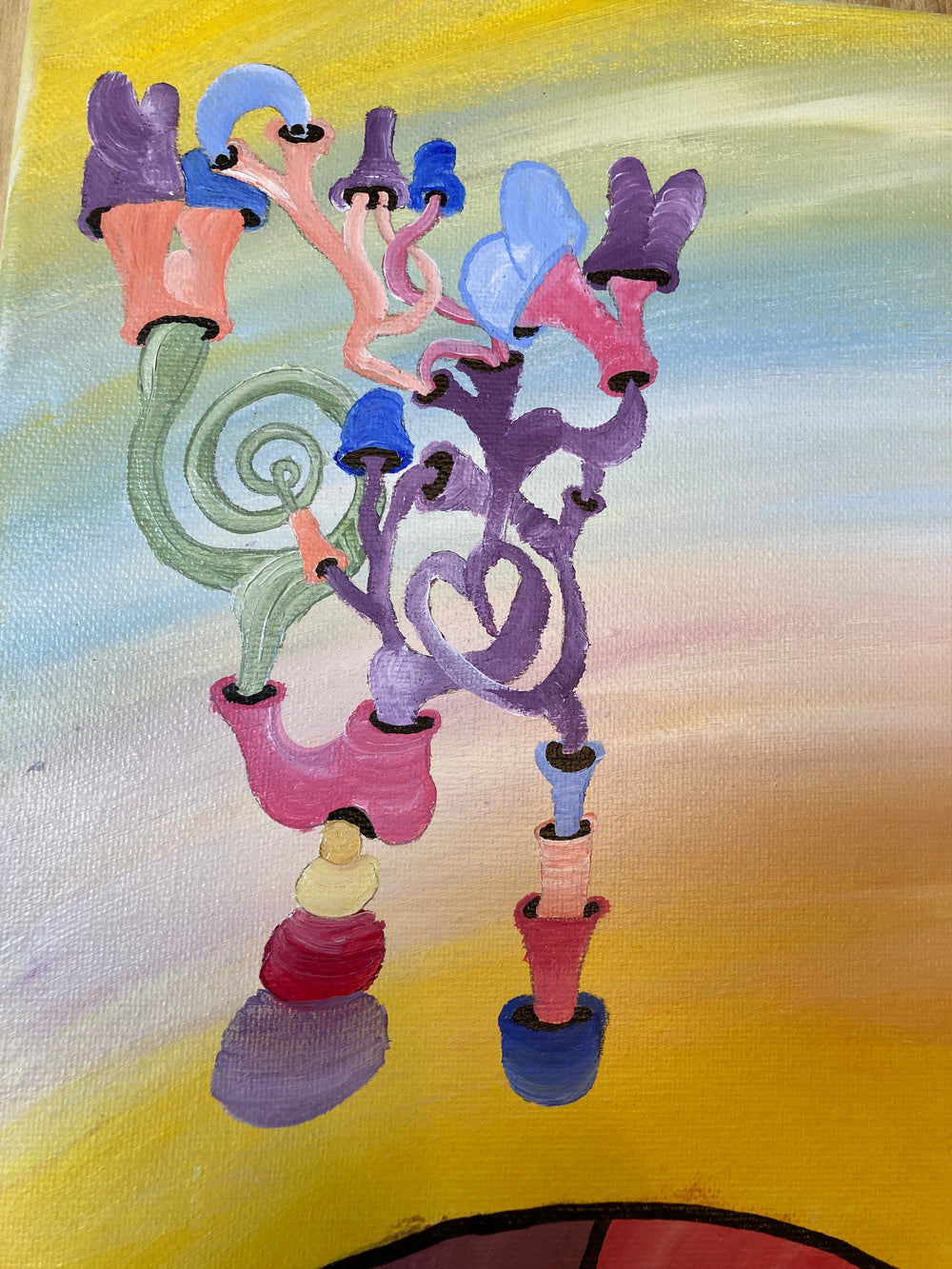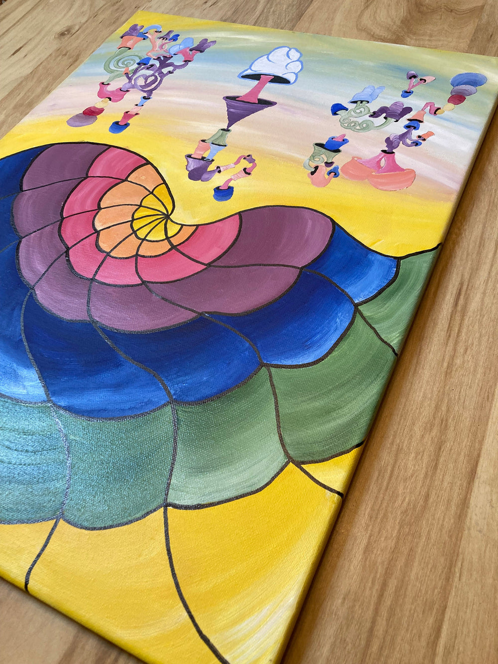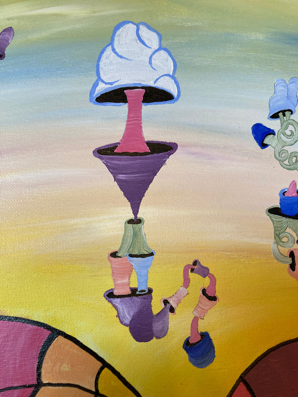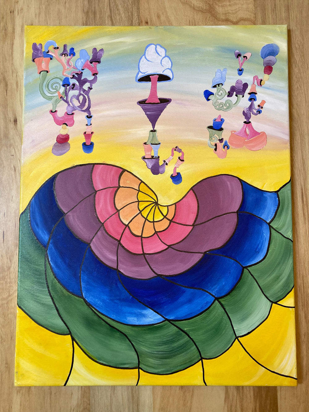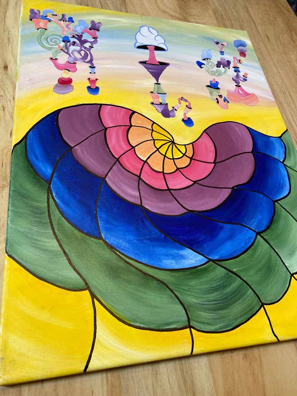 Original Artwork by Adam Unterreiner acrylic on canvas perspective painting featuring vibrant psychedelic color and vibes.