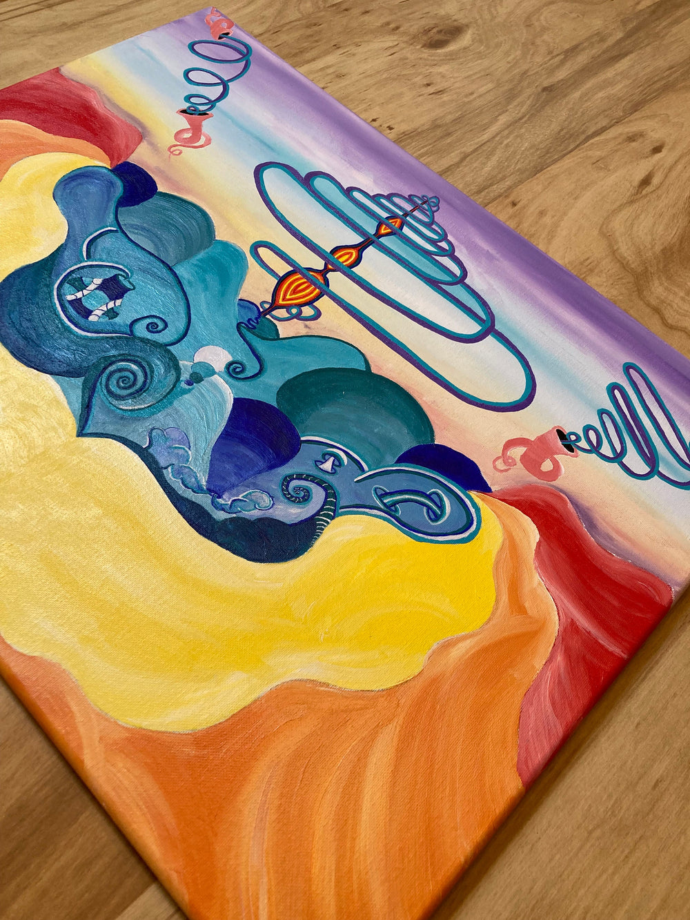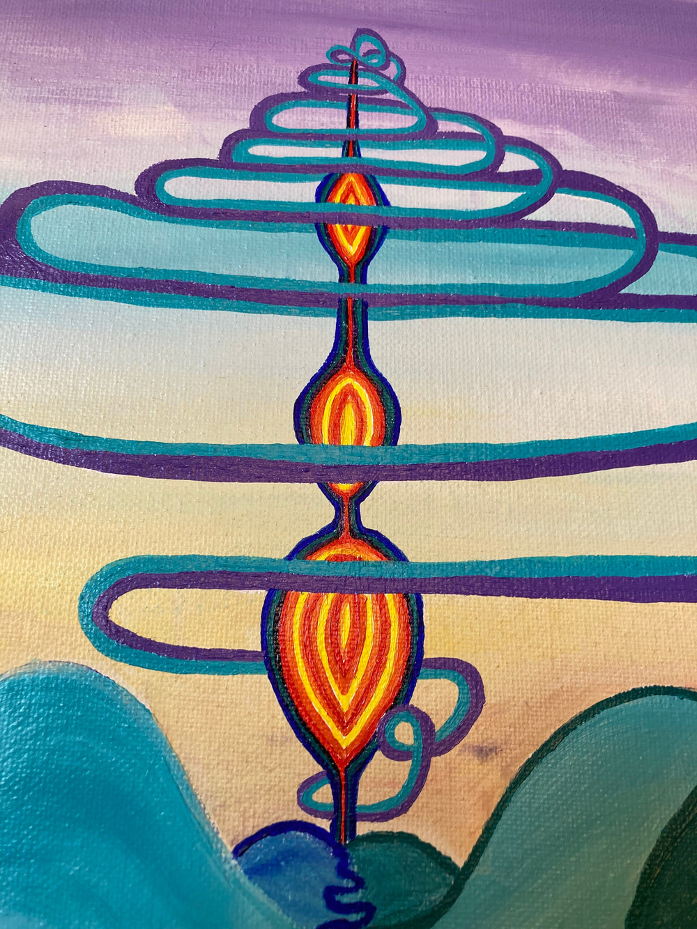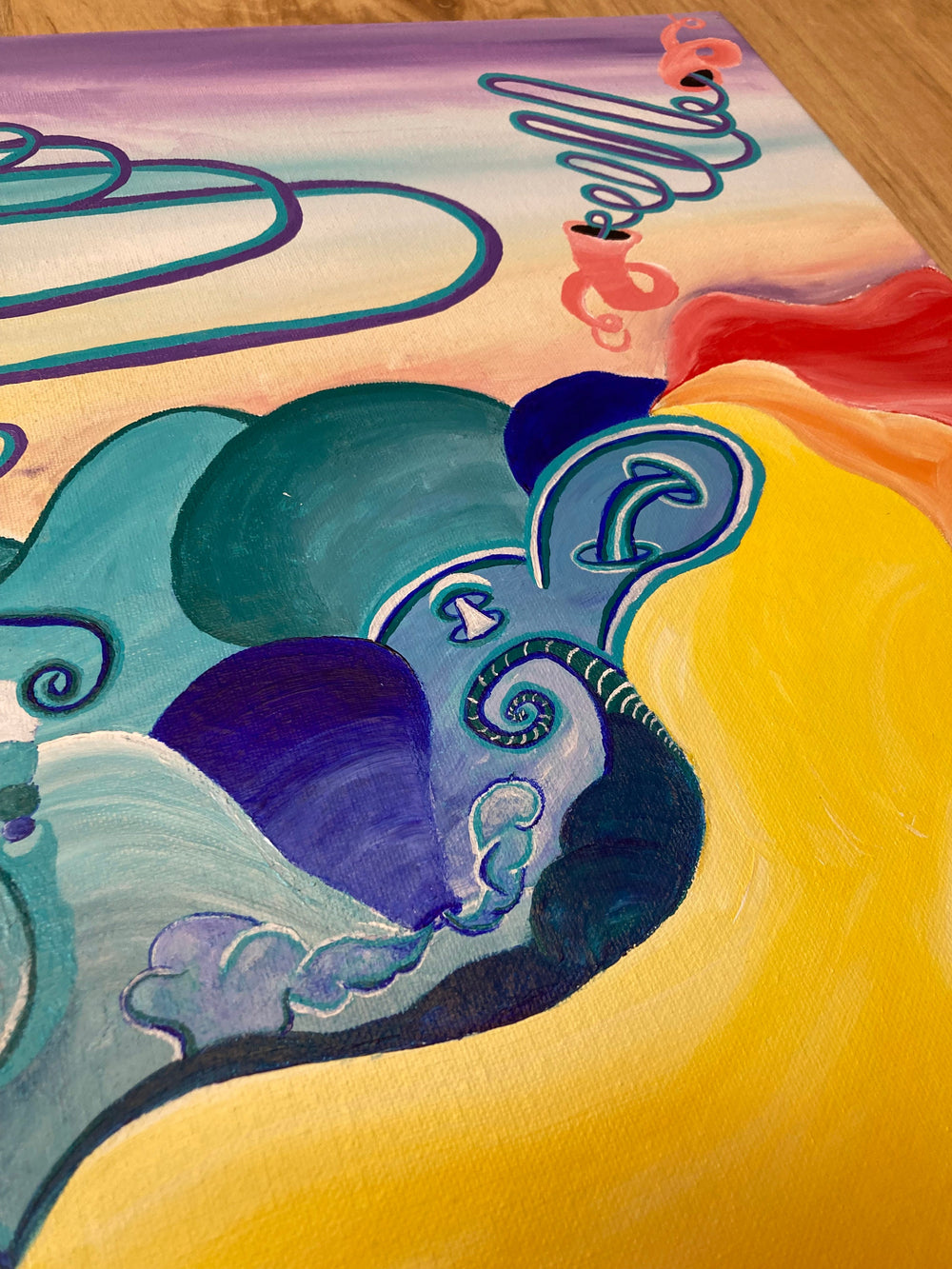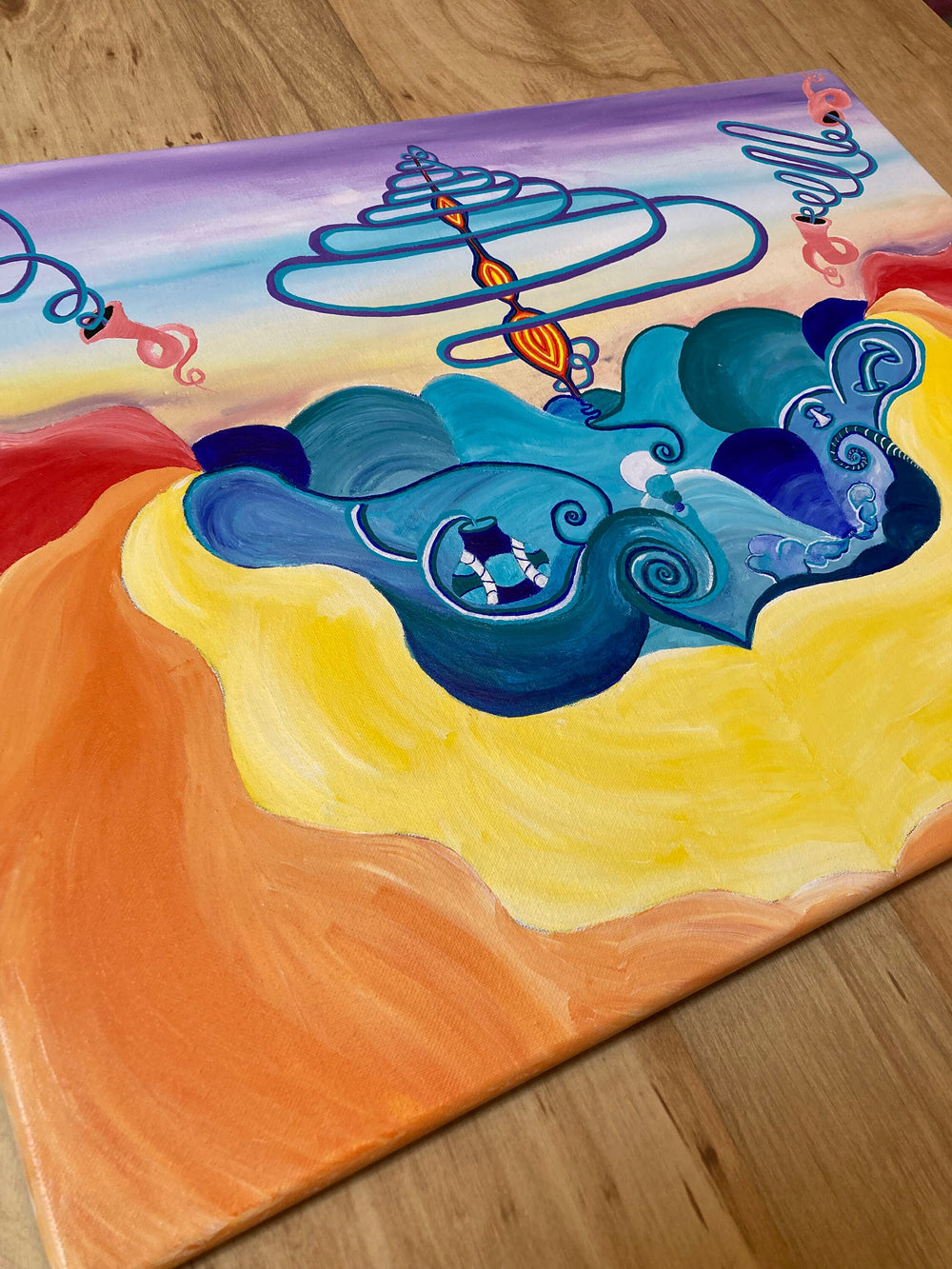 Original Artwork by Adam Unterreiner acrylic on canvas perspective painting featuring vibrant psychedelic color and vibes.