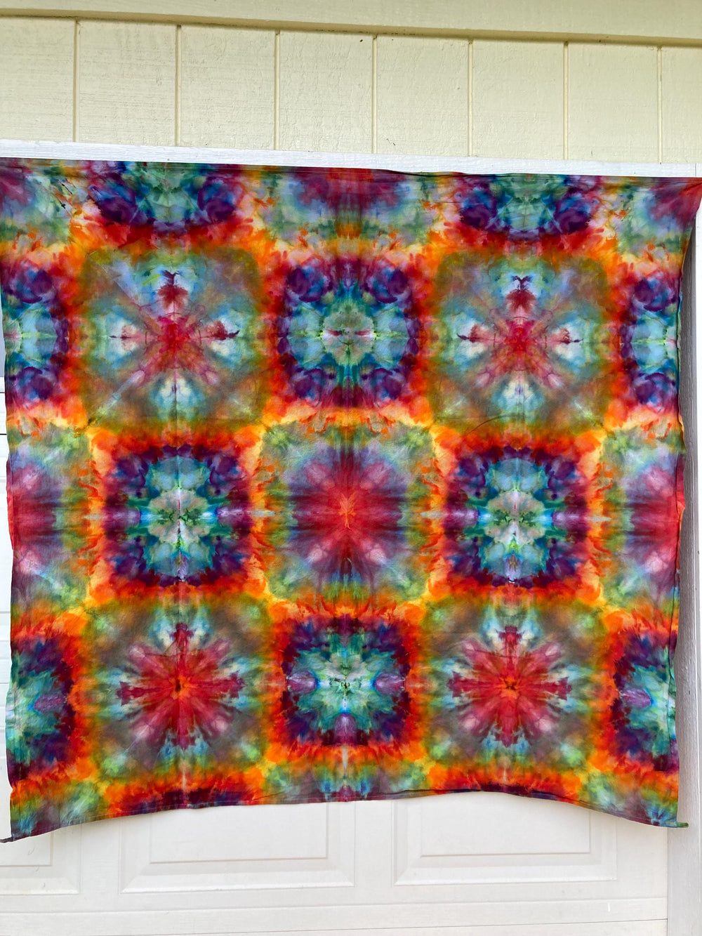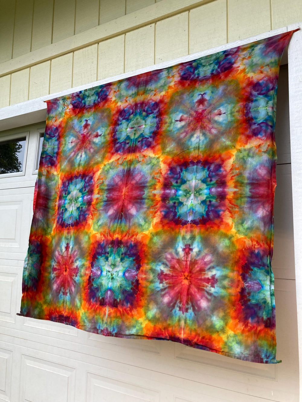 Let the vibrancy of this fine tapestry make your walls pop. May it hang at a festival when seeking insight from within. May it adorn your walls and give further dimensional possibilities to your living space. Do with it what you please it is yours now.Handmade psychedelic tie dye tapestry