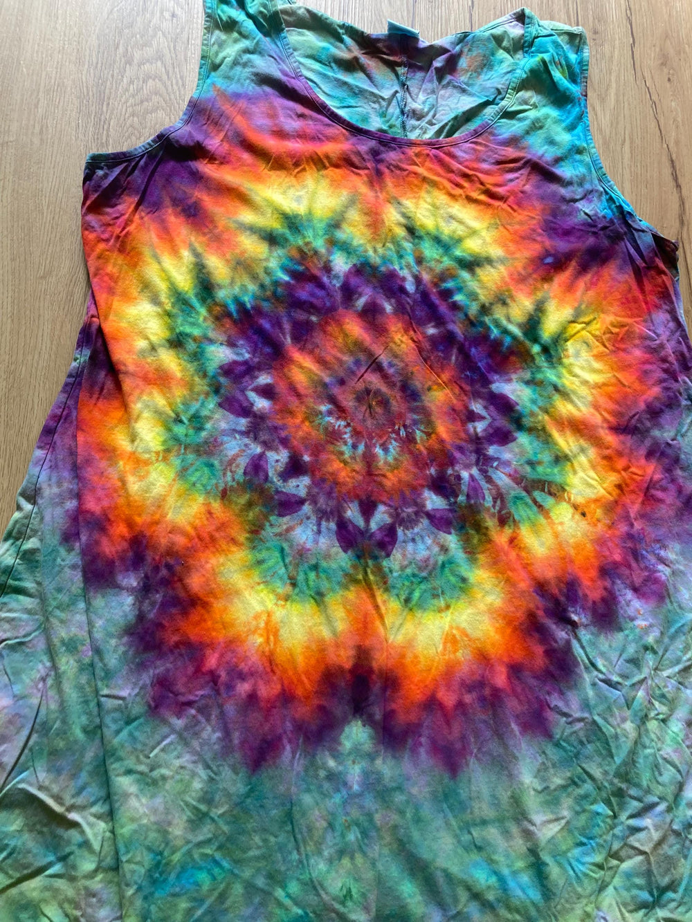 Size 2xl Dress | Psychedelic Hippie Dress | High Low Tie Dye Dress | Mandala Flower Tank Dress | Festival Apparel | Galaxy Ice Dye Dress