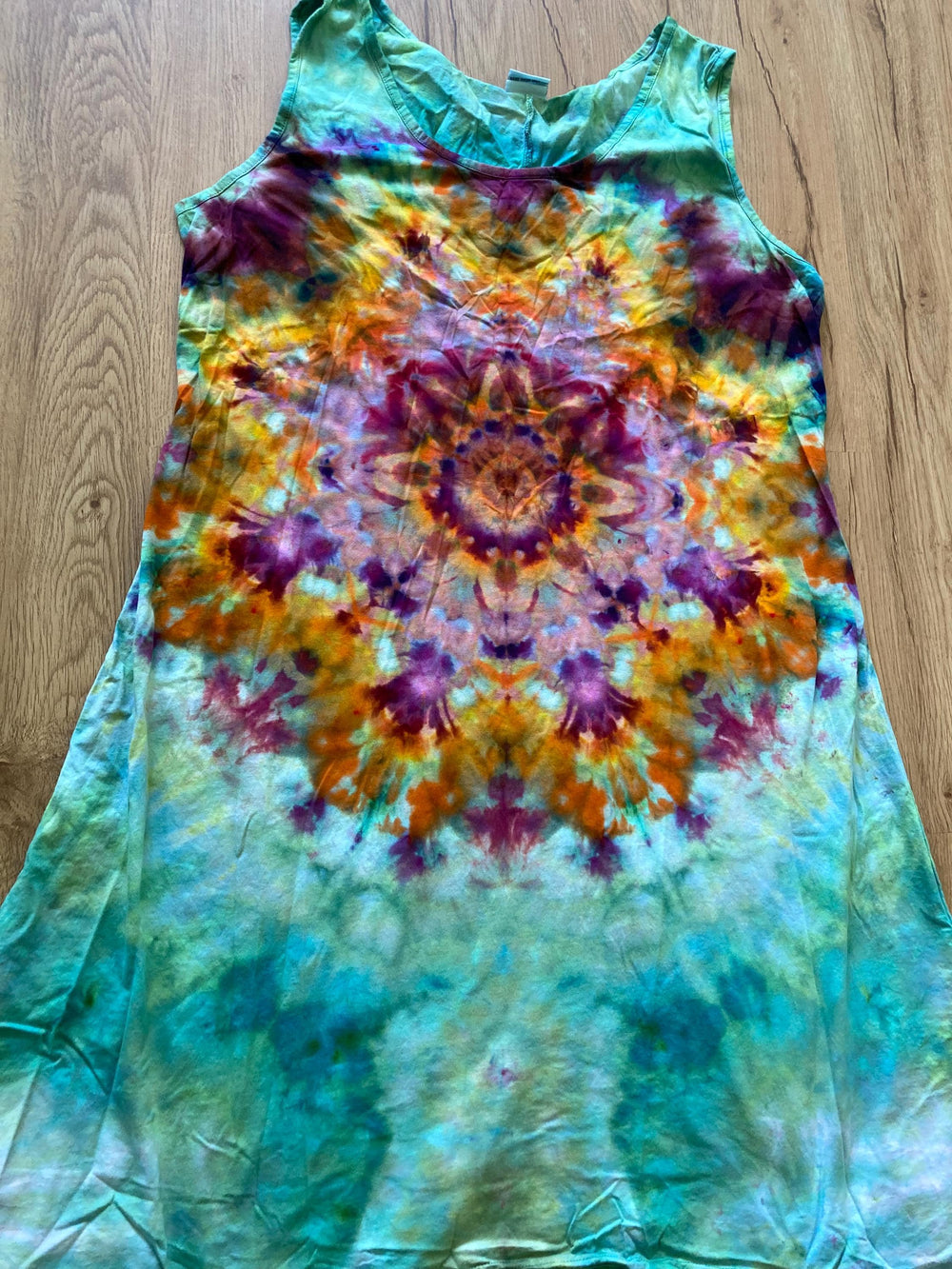 Size Large Dress | Psychedelic Hippie Dress | High Low Tie Dye Dress | Mandala Flower Tank Dress | Festival Apparel | Galaxy Ice Dye Dress