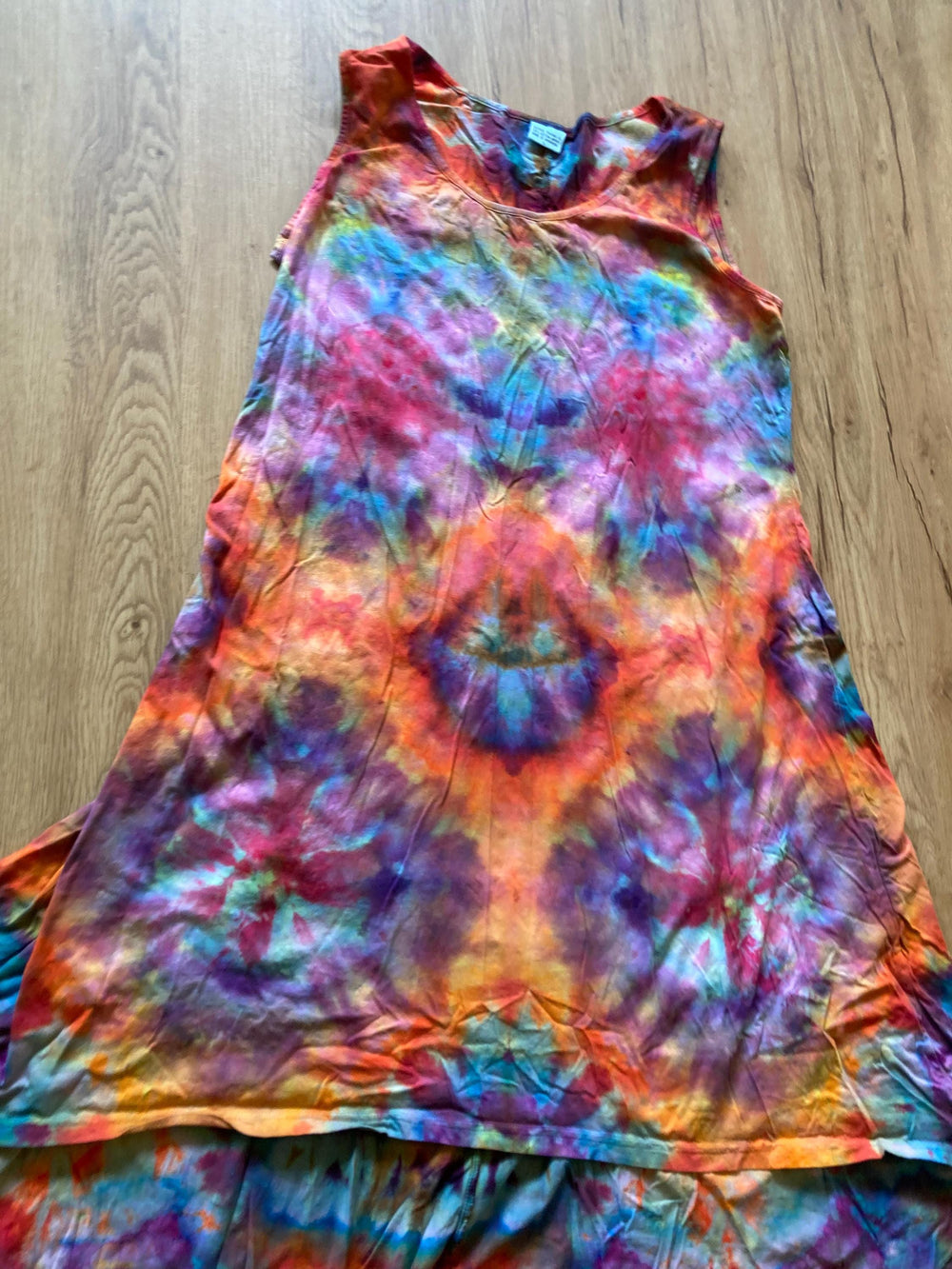 Size Large Dress | Psychedelic Hippie Dress | High Low Tie Dye Dress | Mirror image tank Dress | Festival Apparel | Galaxy Ice Dye Dress