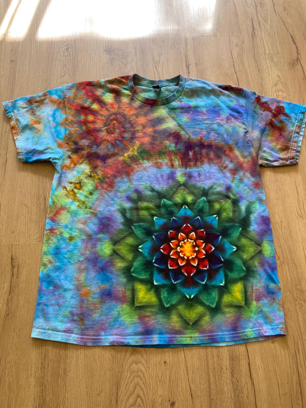 Lotus Tie Dye Shirt | Psychedelic T Shirt | XL Shirt | Galaxy Ice Dye Shirt | Festival Shirt | Mandala Psytrance Shirt | Geode Tie Dye